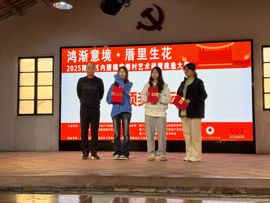 2025年12月28日,由厦门大学嘉庚学院设计与创意学院与翔安区内厝镇黄厝村民委员会联合主办的“2025翔安区内厝镇黄厝村艺术装置建造大赛”在黄厝村圆满落幕。本次活动以“鸿渐艺境·厝里生花”为主题,旨在推动艺术与乡村融合,激发传统村落活力,是我校环境设计专业践行“把论文写在祖国大地上”教学理念的生动实践。